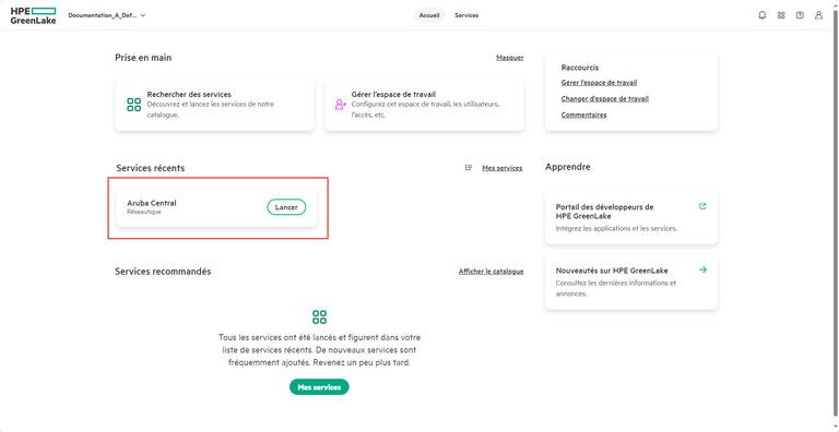 - Accédez au portail Aruba Central et lancez l’application.